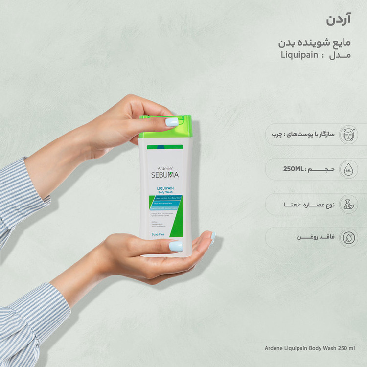 شوینده بدن فاقد مواد صابونی جهت شستشو و پاک نمودن پوست از چربی اضافی و آلودگی ها و متعادل نمودن ترشح چربی پوست که در نتیجه مصرف چربی اضافی پوست رفع و جوش و آکنه در نواحی مختلف بدن از جمله پشت، بازوها، شانه و سینه بدون ایجاد خشکی و حساسیت کاهش یافته و رفع میگردد.