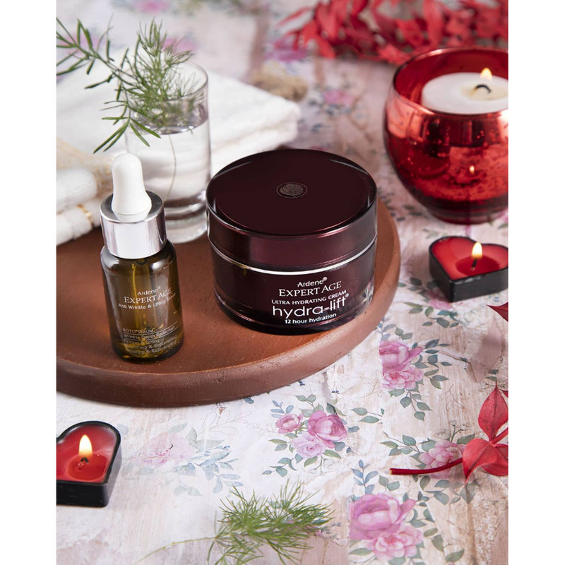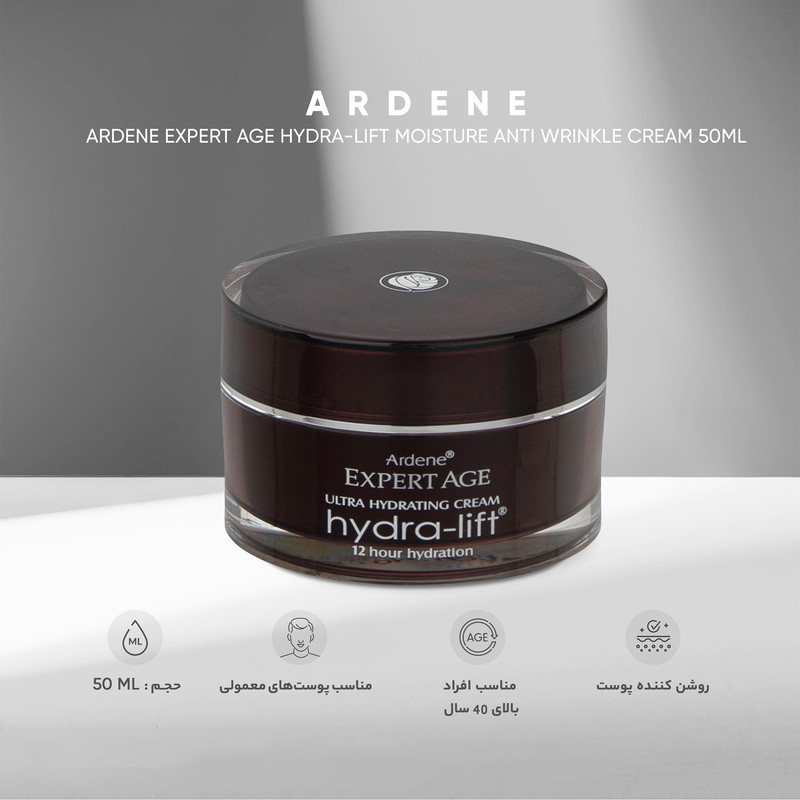 با شستوشو و افزایش سن رطوبت پوست از بین میرود و خطوط ریز و چروکها بر روی پوست نمایان میشوند. به همین دلیل استفاده از محصولاتی که علاوه بر پیشگیری از ایجاد چروک به برطرف کردن آن نیز کمک کند بسیار ضروری است. شرکت آردن در سری محصولات Expert Age که ویژه افراد بالای 40 سال است کرم مرطوب کننده و ضد چروک هدیرا – لیفت را عرضه کرده است که این کرم با بهرهگیری همزمان از مواد مرطوب کننده و ضد چروک و با فرمولاسیون ملایم خود علائم ناشی از خشکی پوست را برطرف کرده، رطوبت پوست را تامین و با افزایش تولید کلاژن و ترمیم بافتهای الاستیک موجب از بین رفتن چین و چروکهای سطحی، کاهش چروک های عمیق و بازگشت خاصیت ارتجاعی پوست میشود. در ترکیبات این کرم از کوآنزیم Q10 استفاده شده که تقویت کنندهی سنتژ کلاژن و الاستین و محافظت کنندهی پوست در برابر آسیبهای ناشی از اشعهی ماوراء بنفش نور خورشید و رادیکالهای آزاد است. عصارههای گیاهی موجود در این کرم مرطوب کننده و ضد چروک مانند زعفران، میموزا، آرنیکا و هاماملیس دارای خواص آنتی اکسیدانی، روشن کنندگی، التیام بخشی و مرطوب کنندگی هستند. این محصول تا 24 ساعت پوست را مرطوب نگه میدارد.