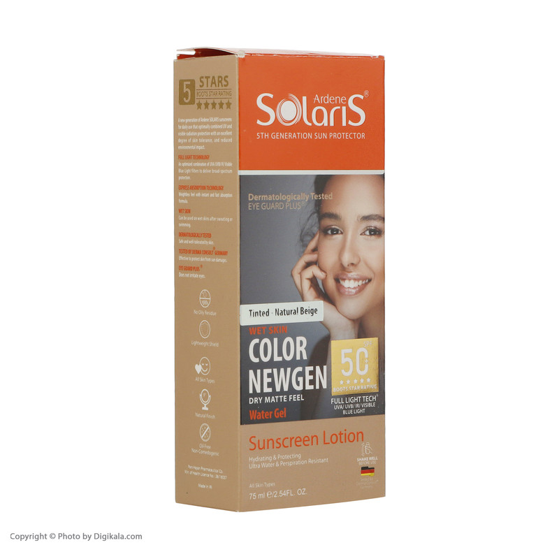 ویژگیهای ضدآفتاب : محافظت کننده در برابر اشعه UVA , محافظت کننده در برابر اشعه UVB , ضد آب , ضد حساسیت , غیر کومدون زا